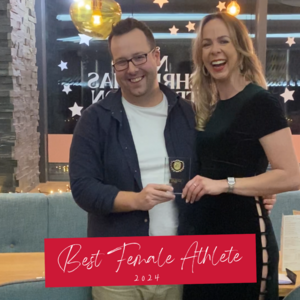 His commitment to the sport, paired with his humour and energy during training, has motivated everyone around him. Sean’s transformation in swimming, cycling, and running reflects his grit, focus, and resilience. Well done, Sean, on a truly well-deserved award!